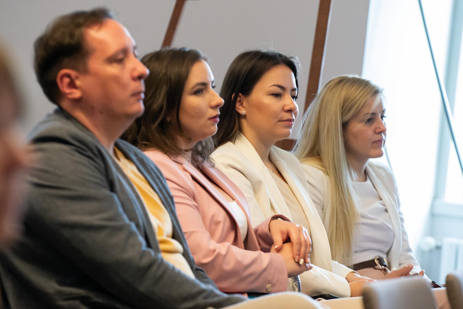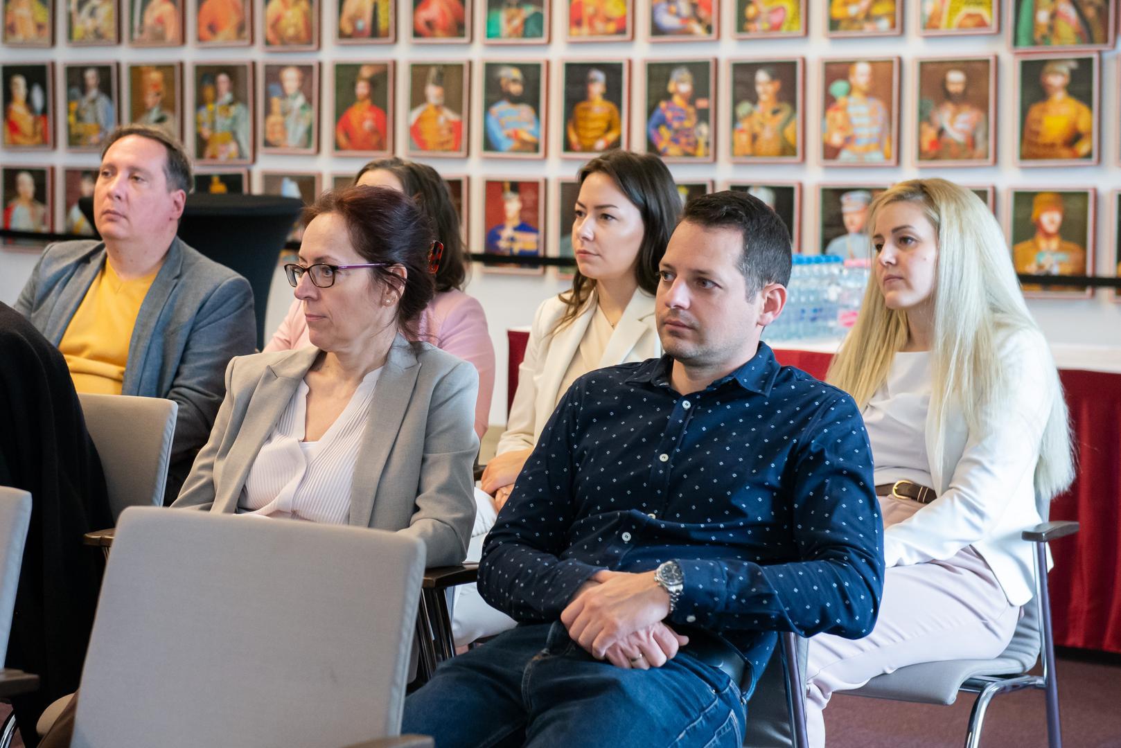 A képzésfejlesztéssel kapcsolatos eredményeket a projekt képzésfejlesztésért felelős szakmai vezető helyettese ismertette. Előadásában bemutatta, hogy a projekt részeként egy széles körű, több kompetenciaterületet lefedő képzési portfóliót alakítottak ki, amely intézményi szinten biztosítja a magas színvonalú képzést. Strukturált képzéseket hoztak létre, amelyek középpontjában a digitális kompetenciák álltak. A képzések erősen gyakorlatorientált irányba tolódtak, miközben kiemelt szerepet kaptak a nyelvi kompetenciák és a döntéshozatali készségek fejlesztése is.